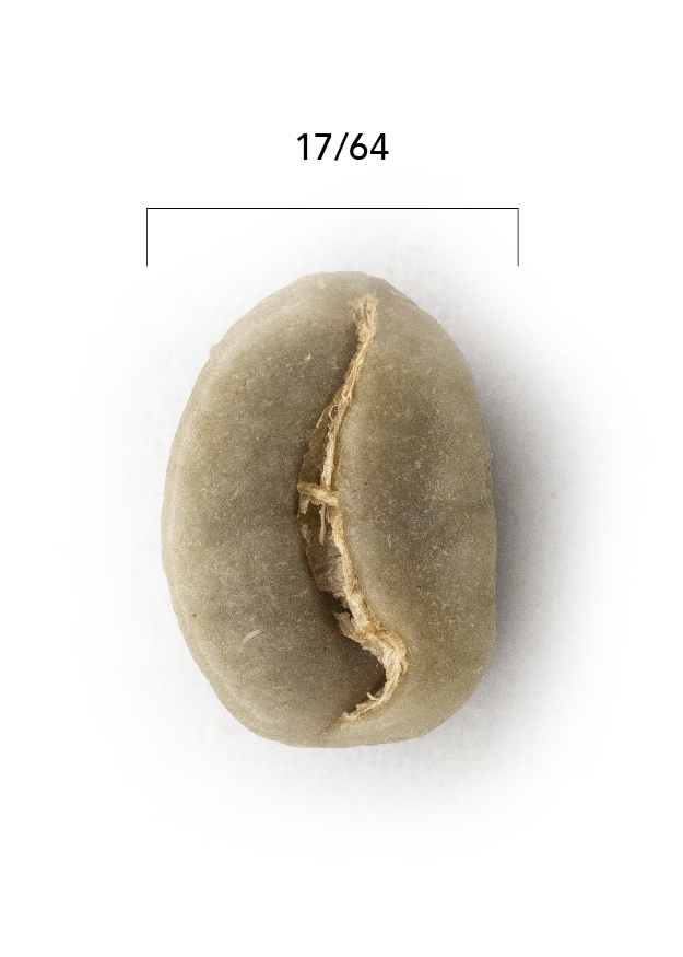 Café retenido sobre la malla 17 con tolerancia del 5% inferior a esta, pero retenido por la malla 14.